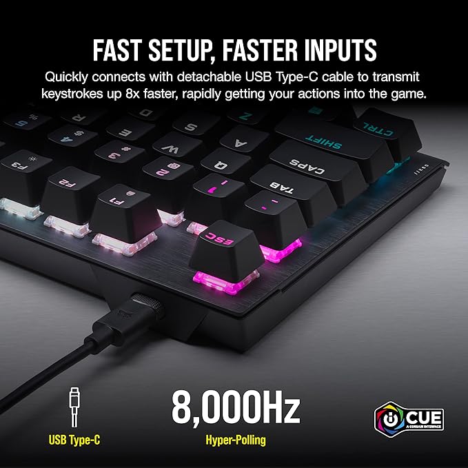 Corsair K60 PRO TKL Wired Optical-Mechanical OPX Linear Switch Gaming Keyboard with 8000Hz Polling Rate – Black
