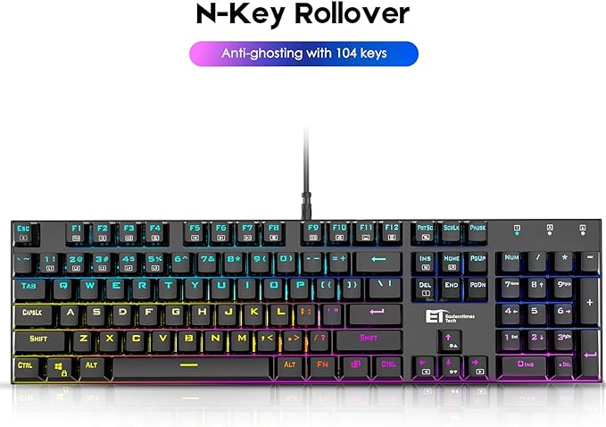 Be the first to review “ET Mechanical Gaming Keyboard RGB Backlit Keys Computer Keyboard, 16.8 Million Color 104 Keys Blue Switch Wired Gaming Keyboards Full Size, Aluminum Base USB Keyboard for PC Gamer Laptop” Cancel reply